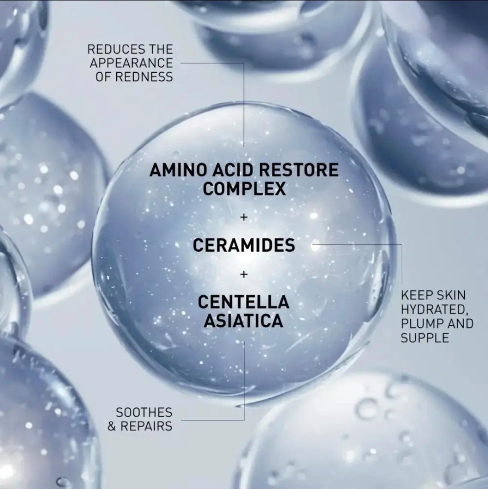 • Amino Acid Restore Complex – Strengthens the skin barrier and reduces sensitivity