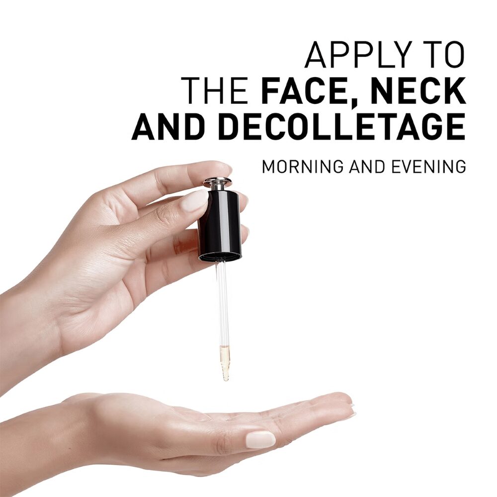 Warm a few drops between your fingers and apply to the face and neck, morning and/or evening. Use alone, before cream, or mixed with your moisturiser for additional comfort.