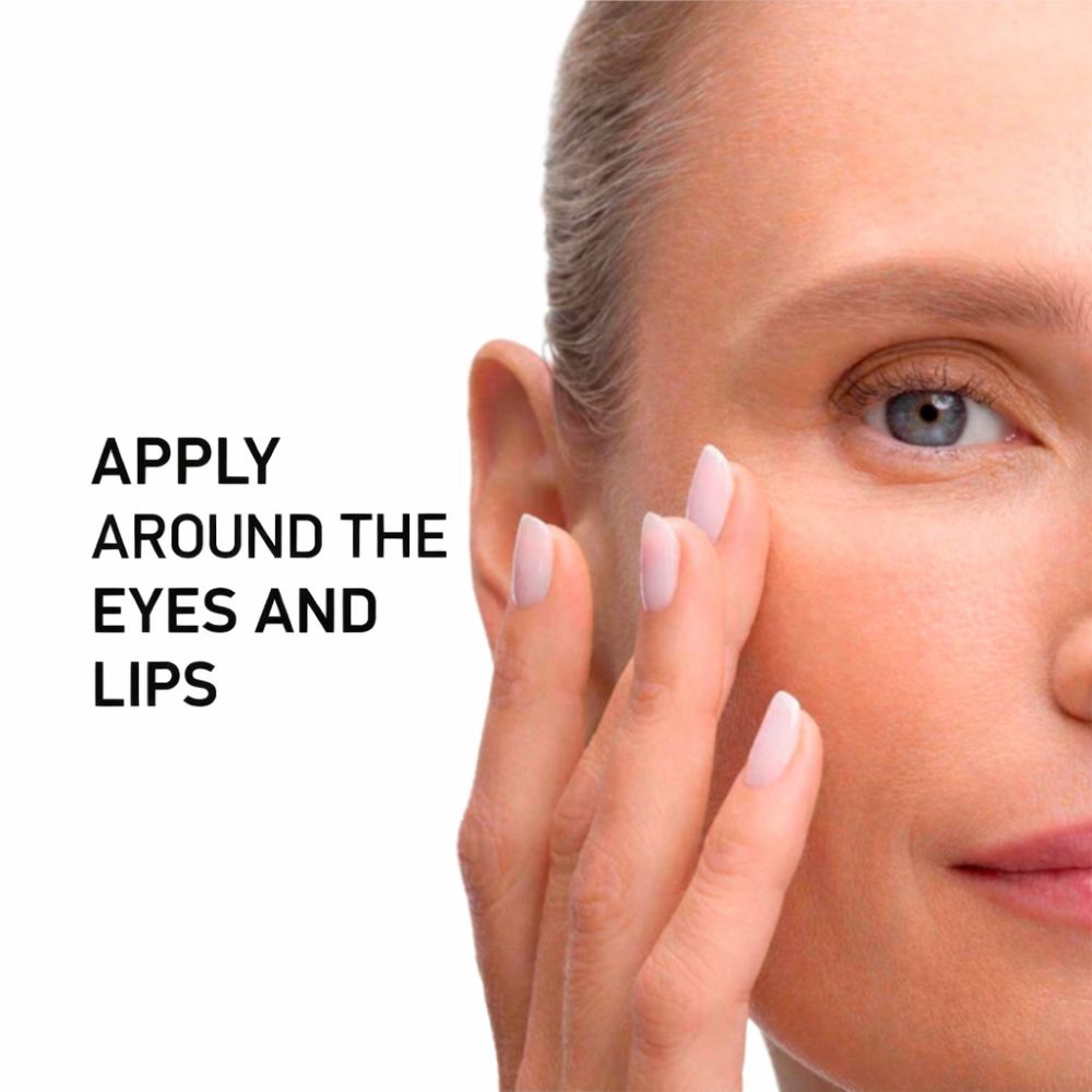 Apply morning and evening to the eye and lip contour. Gently tap until fully absorbed.