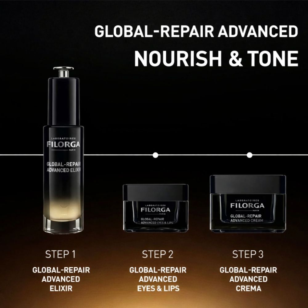 Filorga Global-Repair Advanced Eyes & Lips is a targeted anti-ageing treatment designed for the fragile eye and lip contour. It helps correct wrinkles, dryness and visible signs of fatigue while restoring comfort and vitality. The formula delivers intensive nourishment where skin is most delicate.