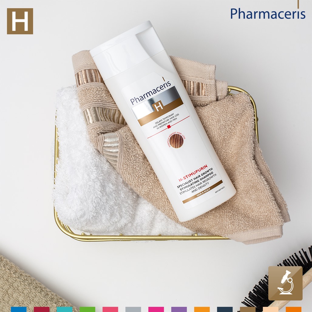 Pharmaceris H-Professional Hair Growth Stimulating Shampoo is designed for women and men affected by excessive temporary or premature hair loss. It helps fight balding related to genetic predispositions and hormonal (androgenic alopecia) or environmental factors. It effectively prevents hair loss caused by prolonged medication, stress, fatigue, general weakness (e.g. related to diet), or after pregnancy. It is suitable for the sensitive scalp.